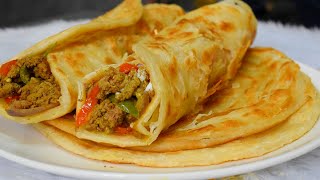 Layered lachha paratha used as roll base with spicy veggie or paneer filling.