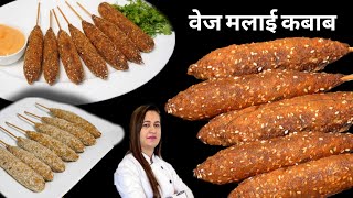 Veg Malai Kebab Recipe - Super Soft and Creamy Veg Kabab Seekh Kabab | वेज मलाई सीख कबाब|